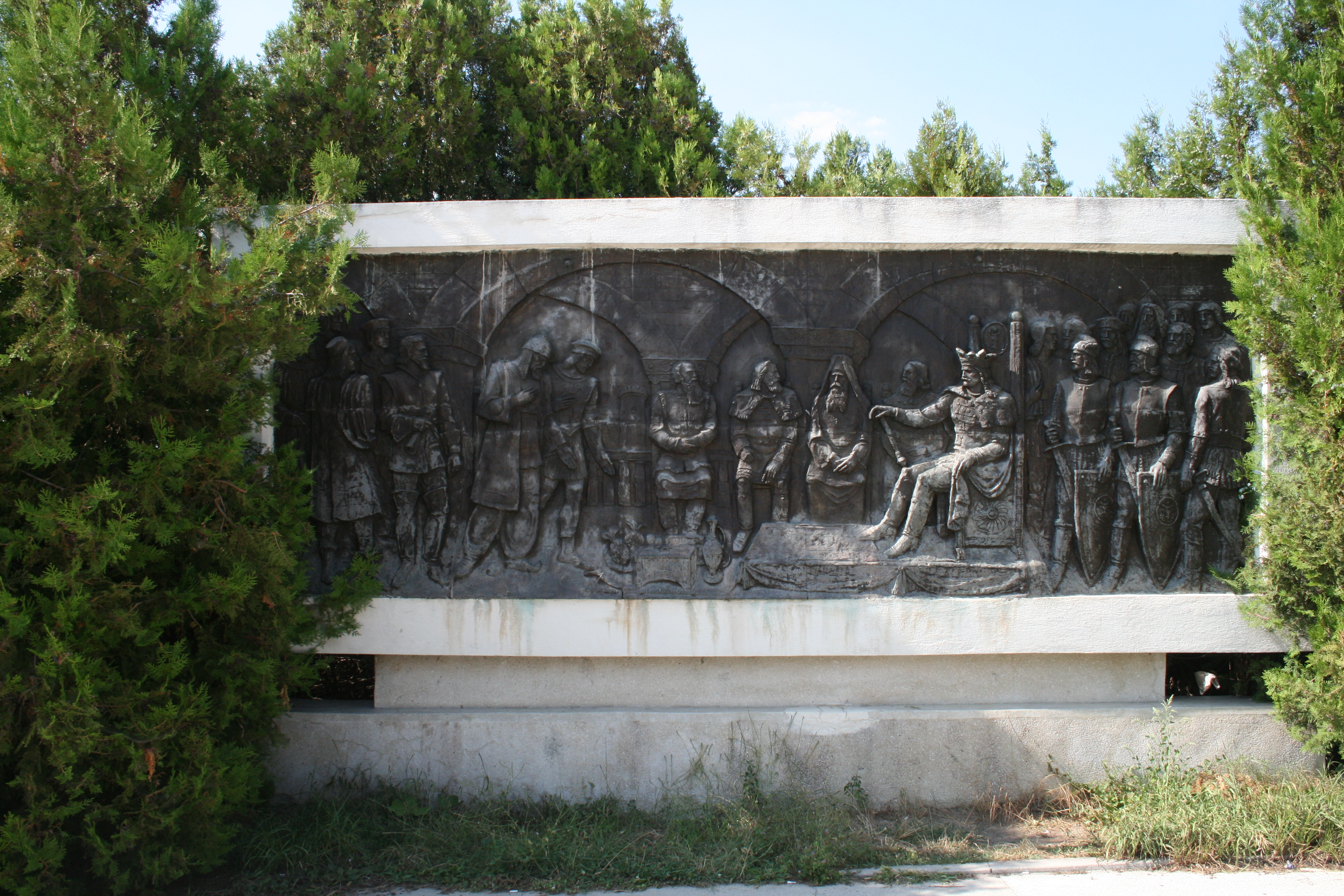 La baza ansamblului monumental se află o scenă realizată din bronz în care voievodul primeşte solia turcilor şi alta înfăţişându-l în mijlocul oamenilor de rând.